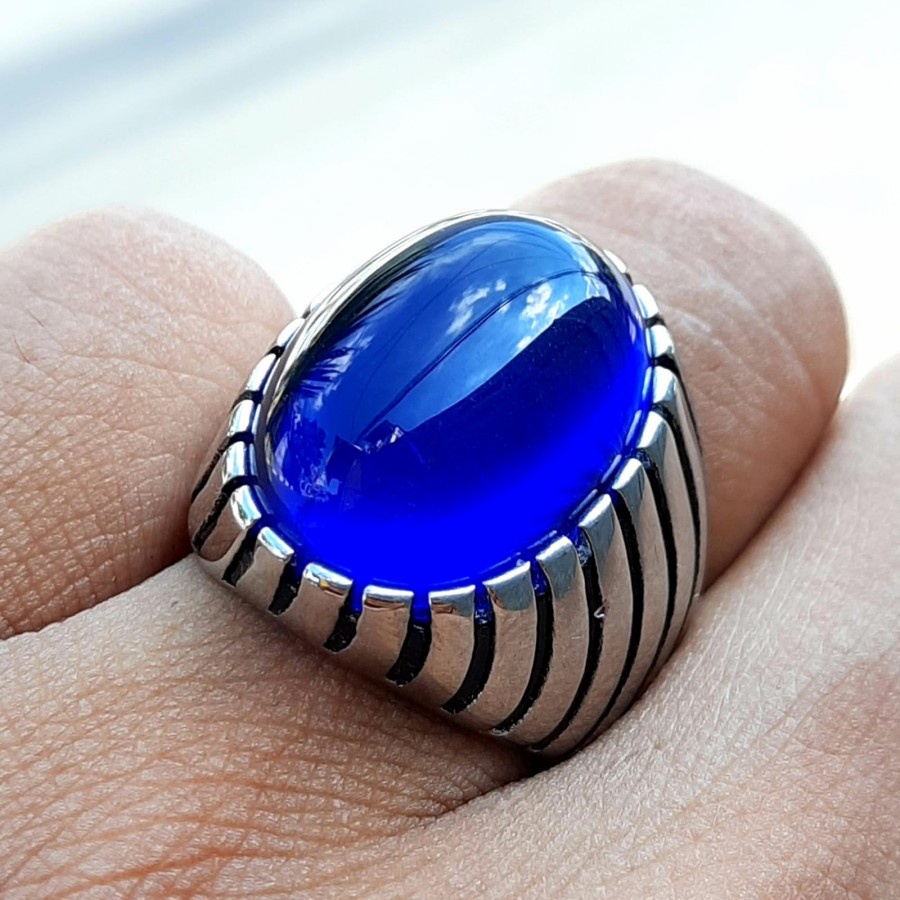 Cincin Batu Akik Mata Kucing Warna Biru Size Kantoran Lazada Indonesia